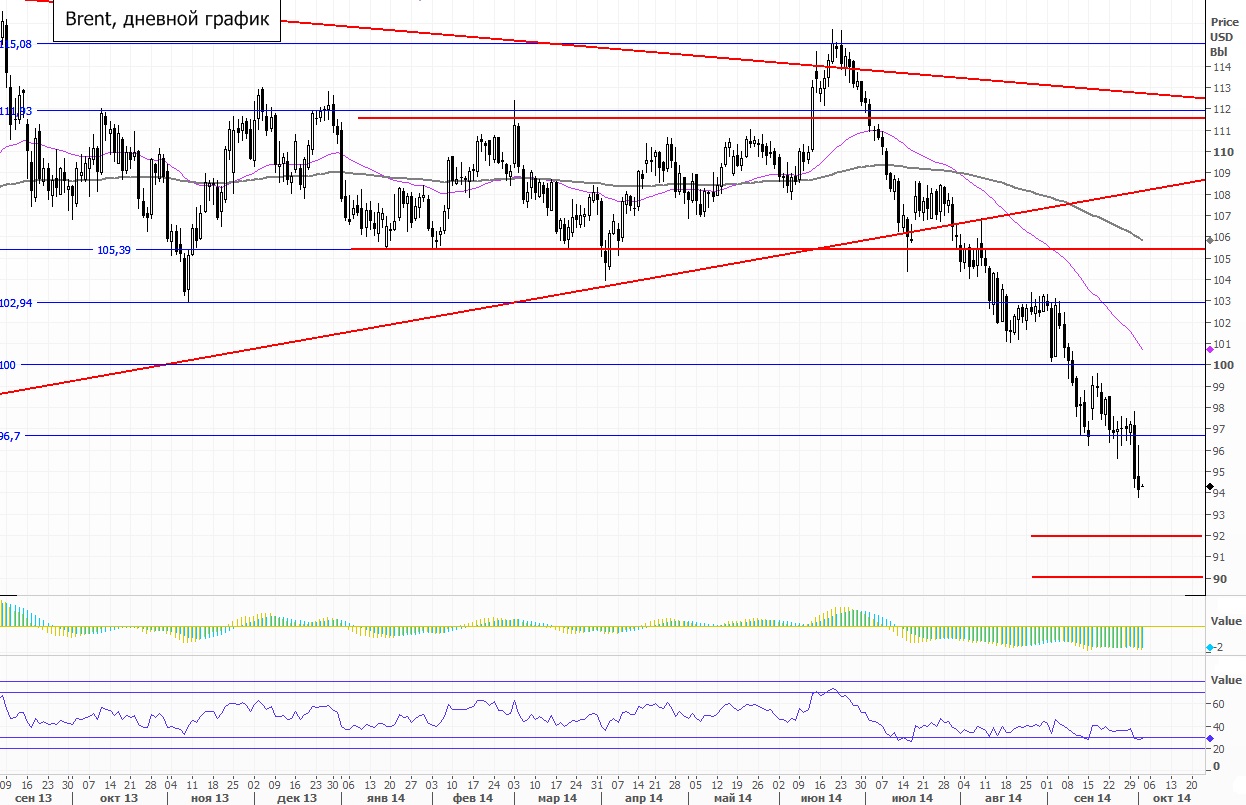 В среду котировки нефти пытались отскочить после провала вторника, однако быков хватило ненадолго. К концу торговой сессии цена североморской смеси Brent вновь пошла вниз, обновив в итоге минимумы с июня 2012 года.